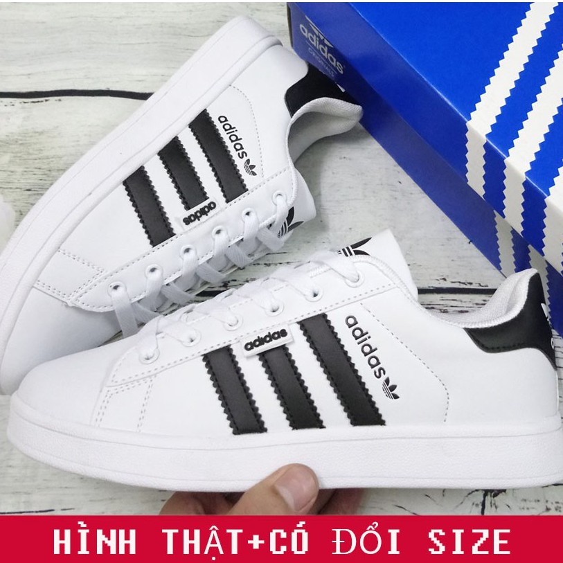 [Freeship] Giày ulzzang Superstar trắng 3 sọc đen trơn nam nữ hàng đẹp | Giày thể thao