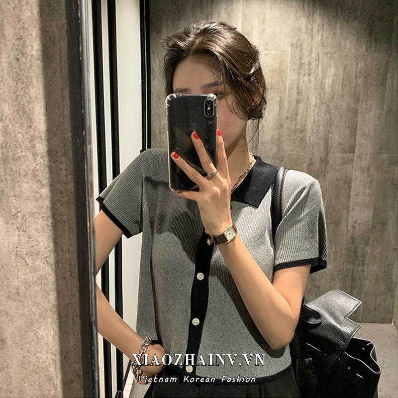 Xiaozhainv Áo lửng dệt kim ngắn tay đơn giản thời trang mùa hè cho nữ free ship