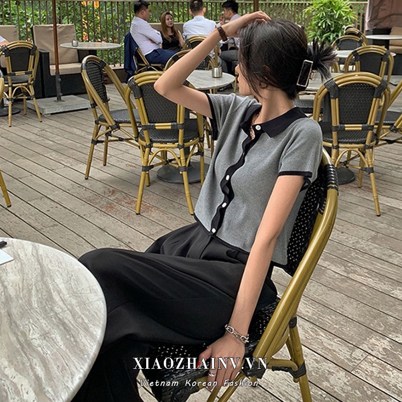 Áo Dệt Kim Tay Ngắn Cổ Bẻ Thời Trang Đáng Yêu Cho Nữ