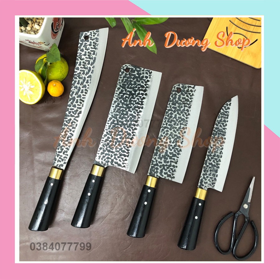 Freeship- Dao bếp bộ 5 dao kéo nhà bếp làm từ thép nhíp xe ô tô dập vân chống dính 2 mặt cao cấp ( AD1) mua tại đây